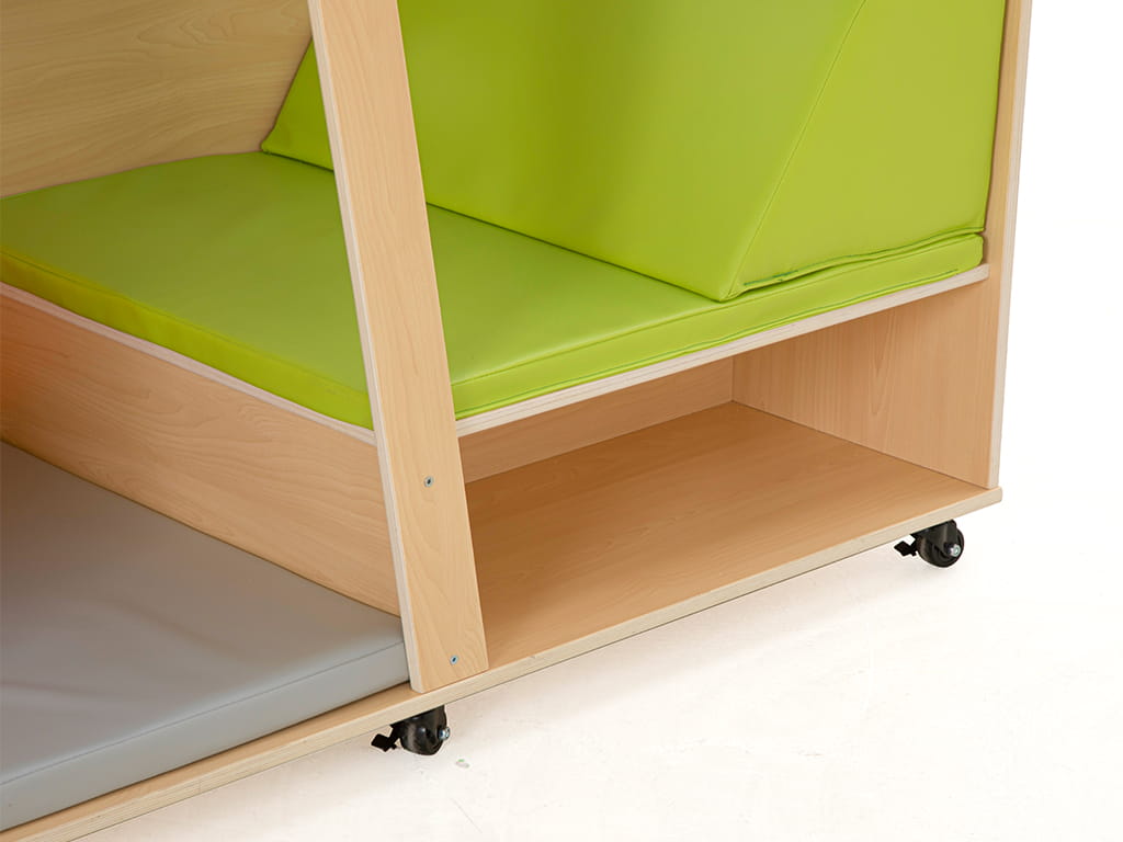 Διαθέτει ευρύχωρο αποθηκευτικό χώρο κάτω από το κάθισμα, ιδανικό για βιβλία, παιχνίδια και εκπαιδευτικό υλικό, διατηρώντας τον χώρο οργανωμένο. Χάρη στους 6 ανθεκτικούς τροχούς με επένδυση από καουτσούκ, μετακινείται εύκολα, επιτρέποντας ευέλικτη χρήση σε διαφορετικά σημεία, όπως αίθουσες, διαδρόμους ή γωνιές χαλάρωσης.