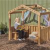 Το σπιτάκι με ανοιχτή οροφή είναι άνετο μέρος για να καθίσετε, να παρατηρήσετε τον κόσμο γύρω σας ή να παίξετε παιχνίδι ρόλων γεμάτο φαντασία. Αυτό το ευέλικτο Καταφύγιο Φαντασίας προσφέρει απεριόριστες επιλογές δημιουργίας και εξερεύνησης, τόσο σε εσωτερικούς όσο και εξωτερικούς χώρους. Χάρη στις προ-τρυπημένες οπές στο επάνω μέρος, μπορείτε εύκολα να αλλάξετε την εμφάνισή του, προσθέτοντας υφάσματα, κουρτίνες ή διακοσμητικά της επιλογής σας. Με μια απλή αλλαγή, μετατρέπεται από γαλήνια γωνιά παρατήρησης σε θεατρική σκηνή, πάγκο αγοράς ή ακόμα και αυτοσχέδιο δεντρόσπιτο.