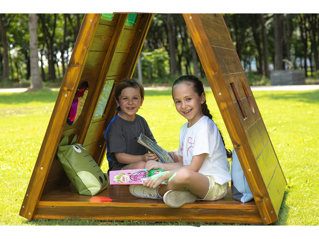 Το ξύλινο σπιτάκι Outdoor Rainbow δημιουργεί μια ευέλικτη και διασκεδαστική γωνιά παιχνιδιού σε κάθε εξωτερικό χώρο. Τα παιδιά μπορούν να μπουσουλήσουν μέσα, να κρυφτούν ή να βρουν ένα ασφαλές και προστατευμένο σημείο για παιχνίδι και χαλάρωση.
