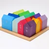 - Ξύλινα, πολύχρωμα σπιτάκια σε διαφορετικά μεγέθη.