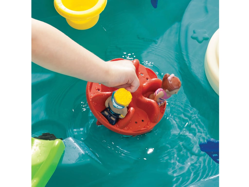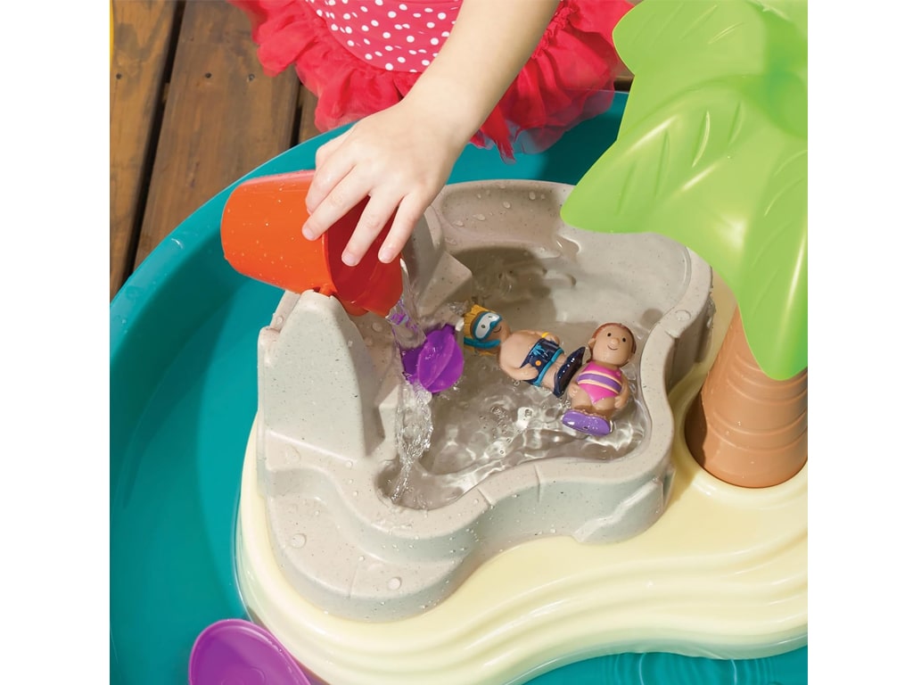 Παίξε με τις φιγούρες στην τσουλήθρα, το νερό και την πισίνα. Με ρυθμιζόμενο ύψος τραπεζιού για να είναι προσβάσιμο σε παιδιά κάθε ηλικίας. Ο φοίνικας ρίχνει νερό σε διάφορες κατευθύνσεις. Με 10 αξεσουάρ όπως ανθρώπινες φιγούρες, βαρκάκι, τσουλήθες, νερόμυλο και άλλα. Πολύ ανθεκτική κατασκευή. Ιδανικό για ομαδικό παιχνίδι. Με τάπα που δεν επιτρέπει διαρροές. Μπορεί να γεμίσει με διαφορετικά αντικείμενα για παιχνίδι sensory εσωτερικού χώρου.