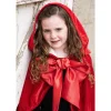 Αυτή η κάπα είναι εμπνευσμένη από την ηρωίδα της κοκκινοσκουφίτσας. Το ύφασμα της κατασκευάζεται από ελαστικό βελούδο και επένδυση με κρεμ σατέν 96 γρ. Ο μεγάλος σατέν φιόγκος αφαιρείται. Εύκολο στο πλύσιμο. Οδηγίες πλυσίματος: πλύσιμο στο πλυντήριο – κρύο, απαλός κύκλος, χωρίς χλωρίνη, φυσικό στέγνωμα, σίδερο σε χαμηλή θερμοκρασία. Ηλικία: 4-6