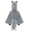 - Αυτή η κάπα διαθέτει ένα ρεαλιστικό μονοκόμματο πρόσωπο λύκου, λευκή γούνα γύρω από το λαιμό, λευκή ουρά και προσκολλημένα πόδια. Φτιαγμένο με ελαστική θηλιά μέσα στα πόδια για να επιτρέπει στο παιδί σας να πιάνει εύκολα τα πόδια ακόμα κι αν τα χέρια του δεν είναι αρκετά μακριά.
