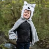 Αυτή η κάπα διαθέτει ένα ρεαλιστικό μονοκόμματο πρόσωπο λύκου, λευκή γούνα γύρω από το λαιμό, λευκή ουρά και προσκολλημένα πόδια. Φτιαγμένο με ελαστική θηλιά μέσα στα πόδια για να επιτρέπει στο παιδί σας να πιάνει εύκολα τα πόδια ακόμα κι αν τα χέρια του δεν είναι αρκετά μακριά. Οδηγίες πλυσίματος: πλύσιμο στο πλυντήριο – κρύο, απαλός κύκλος, χωρίς χλωρίνη, φυσικό στέγνωμα, σίδερο σε χαμηλή θερμοκρασία. Ηλικία: 4-6