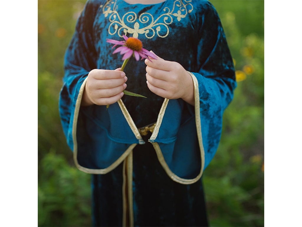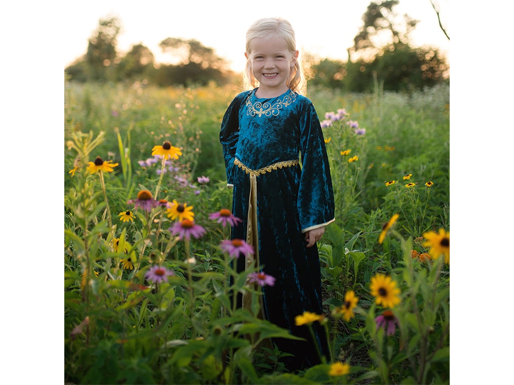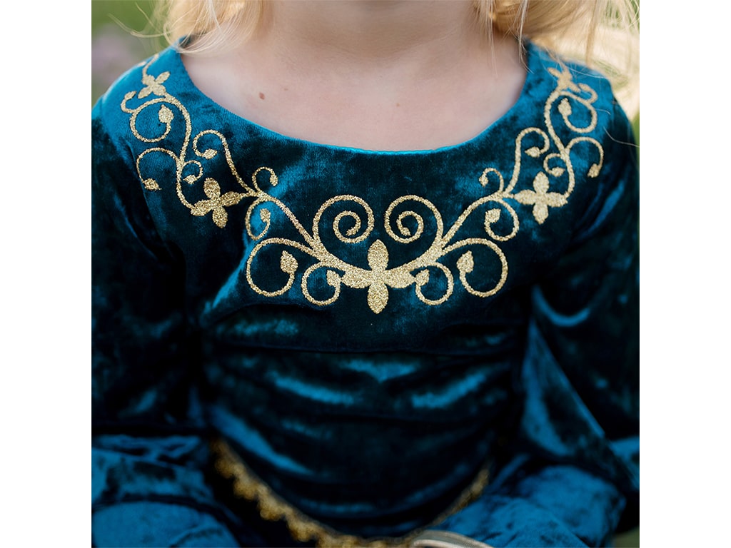 Μια στολή εμπνευσμένη από τη μεσαιωνική εποχή, για κάθε κορίτσι που θέλει να νιώσει σαν πραγματική βασίλισσα. Η στολή Βασίλισσα Guinevere είναι φτιαγμένη από πολυτελές βελούδινο ύφασμα σε εντυπωσιακή τιρκουάζ απόχρωση, με χρυσές λεπτομέρειες που προσθέτουν λάμψη και αριστοκρατικό χαρακτήρα.