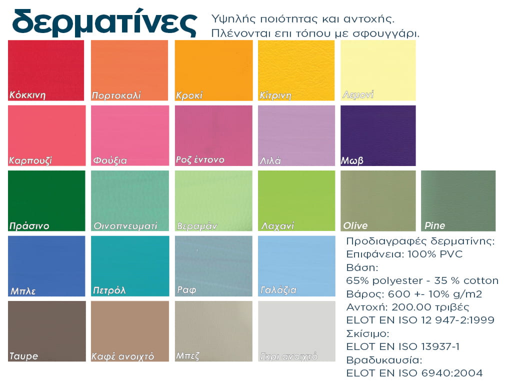 - Επένδυσή από υφάσματα, δερματίνες ή ναϊλόπανα