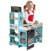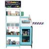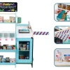 Αποτελείται από έναν πάγκο ως χώρο ταμείου, έχει μία ράμπα που μπορεί να κλείσει και να ανοίξει, έναν πίνακα κιμωλίας για να γράψετε και ένα ξύλινο τερματικό πληρωμών. Υπέροχες λεπτομέρειες, όπως μια θήκη περιοδικού, μια περιστρεφόμενη πινακίδα ΑΝΟΙΧΤΟ/ΚΛΕΙΣΤΟ και ένας διαχωριστής προϊόντων εξασφαλίζουν την τέλεια εμπειρία αγορών. Επιπλέον, υπάρχουν 50 κουτιά αξεσουάρ και πέντε χάρτινες σακούλες που ολοκληρώνουν το παιχνίδι.