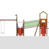Σκάλα ανάβασης. Η σκάλα αποτελείται από, 2 ξύλινες επικολλητές κολώνες διατομής 10 x 10 εκ., 2 πλαϊνούς βαθμιδοφόρους από ξυλοδοκούς διατομής 14 x 4,5 εκ. με ενίσχυση από σιδηροδοκό 20 x 30 χιλ, 4 σκαλοπάτια από ξυλοδοκούς διατομής 14 x 4,5 εκ., 4 κουπαστές από ξυλοδοκό διατομής 10 x 5 εκ. Η σκάλα προσαρμόζεται σε μία από τις ελεύθερες πλευρές της πλατφόρμας. Τα σκαλοπάτια έχουν ίσες αποστάσεις μεταξύ τους και είναι σταθεροποιημένα οριζόντια. Στο πίσω μέρος των σκαλοπατιών τοποθετείται προστατευτική επιφάνεια για την αποφυγή παγιδεύσεων. Η κουπαστή λειτουργεί και ως προστατευτική μπάρα για την αποφυγή πτώσεων. Προσαρμοζόμενη κούνια παίδων. Η κούνια αποτελείται από, 1 ξύλινη επικολλητή οριζόντια δοκό διατομής 10 x 10 εκ., 2 ξύλινα επικολλητή υποστυλώματα διατομής 10 x 10 εκ., 1 καθίσματα παίδων με αλυσίδες. Η οριζόντια δοκός συνδέεται με μία από τις κολώνες της πλατφόρμας. Στο κάτω μέρος της και σε κατάλληλες θέσεις βιδώνονται δύο κουζινέτα από χάλυβα, ειδικά σχεδιασμένα για την ανάρτηση του καθίσματος. Το κάθισμα έχει διαστάσεις 44 x 18 x 4 εκ. και είναι κατασκευασμένο από καουτσούκ με εσωτερική ενίσχυση από αλουμίνιο. Αναρτάται από τα κουζινέτα με τη χρήση ζεύγους γαλβανισμένων αλυσίδων.