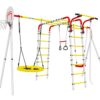 Σύνθεση παιδικής χαράς με κούνιες, αναρρίχηση και μπάσκετ που θα βοηθήσει τα παιδιά καθώς διασκεδάζουν να δυναμώσουν όλο το σώμα τους και να ενισχύσουν την αντοχή τους και πολλές κινητικές και πνευματικές δεξιότητες όπως, την ευλυγισία, τον συντονισμό, τη συγκέντρωση, την αυτοπεποίθηση τους κ.α.