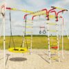 Περιλαμβάνει 1 πλαστική κούνια, 1 κούνια φωλιά, μπασκέτα, 2 μονόζυγα, κρίκους και αναρρίχηση με 2 πολύζυγα και 1 σχοινί.