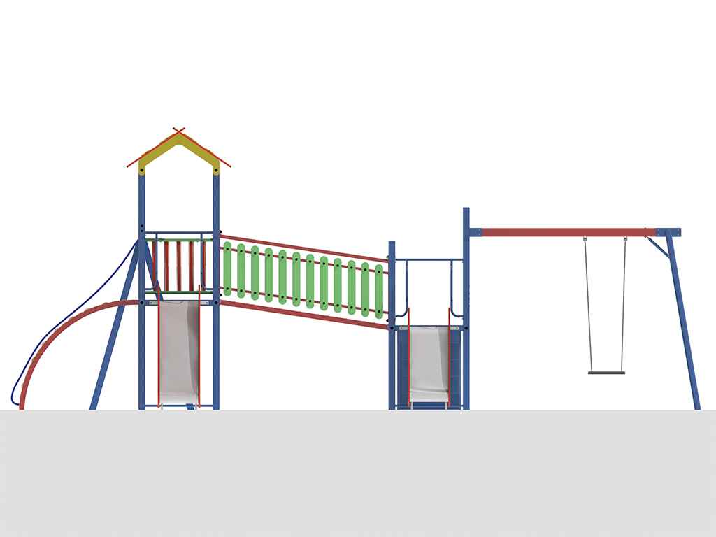 Η καμπύλη ράμπα προσαρμόζεται σε μία από τις ελεύθερες πλευρές της πλατφόρμας. Στην είσοδο προς την πλατφόρμα τοποθετείται εγκάρσια προστατευτική μπάρα από σιδηροσωλήνα Φ26 χιλ., πάνω στην οποία προσαρμόζεται το σχοινί.