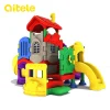 Συγκρότημα παιδικής χαράς. Κατασκευασμένο από πολύ ανθεκτικό πλαστικό υλικό βαρέως τύπου. Αποτελείται από ένα σπιτάκι το οποίο βρίσκεται σε ένα επίπεδο και στηρίζεται σε κολώνες στήριξης από γαλβανιζέ ατσάλι με πλαστική επικάλυψη εξωτερικά – πασσάλους. Διαθέτει 6 παταράκια σε 5 διαφορετικά ύψη, μια σκάλα με πλαϊνά ασφαλείας και δύο τσουλήθρες. Στο ανέβασμα της σκάλας, η είσοδος είναι μορφοποιημένη σε ζωάκι και διαθέτει τρίλιζα στο πλάι. Πλαστικά μέρη με προστασία UV, αντιστατικά και αντιολισθητικά.