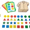 Άυτό το σετ θα βοηθήσει τα παιδιά να μάθουν τα χρώματα και τα σχήματα καθώς δένουν τα κουμπιά στα μπλουζάκια. Ιδανικό για την ανάπτυξη λεπτών κινητικών δεξιοτήτων. Κατάλληλο για συλλογικό παιχνίδι, καθώς μπορούν να το χρησιμοποιούν ταυτόχρονα πολλά παιδιά. Περιλαμβάνει 10 κάρτες διπλής όψης (15 Χ 19,5 εκ.) με αλληλουχίες σχημάτων, σε 3 επίπεδα δυσκολίας, 32 κουμπιά από ξύλο πεύκου σε 4 χρώματα και σχήματα (4 Χ 4 εκ.) 4 ξύλινα μπλουζάκια από κόντρα πλακέ (20 Χ 20 εκ.) και 8 κορδόνια. Ηλικία: 3 ετών και άνω.