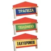 - Συνοδεύεται από τρεις επιγραφές, χαραγμένες σε ηλεκτρονικό μηχάνημα ακριβείας, που αλλάζουν εύκολα ανάλογα με την χρήση της γωνιάς και αποθηκεύονται σε ειδικό ράφι εσωτερικά.