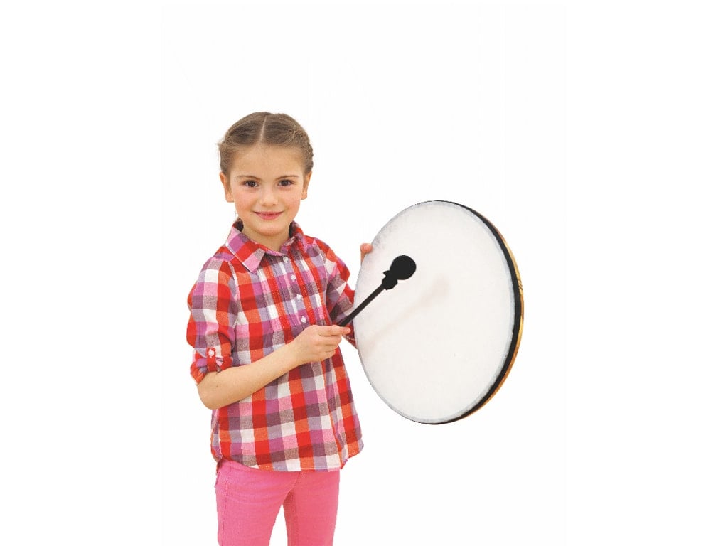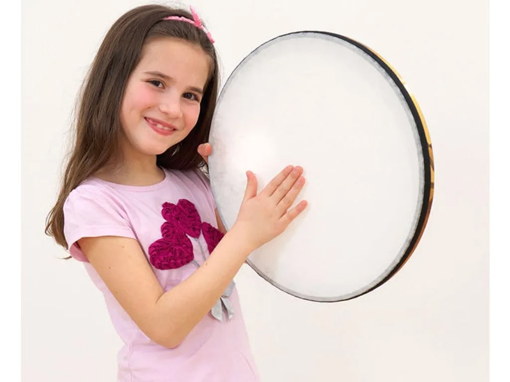 Ταμπούρλομε επιφάνεια από σκληρό νάυλον περιλαμβάνεται μπαγκέτα. Παίζεται με το χέρι ή με μπαγκέτα.