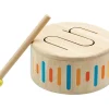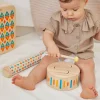 Ένα ταμπούρλο όμορφα σχεδιασμένο για να εξασκεί την ακουστική ικανότητα του παιδιού, τις λεπτές κινητικές δεξιότητες και τη μυϊκή δύναμη των χεριών του. Το ξυλάκι του καταλήγει σε καουτσούκ για να γλυκαίνει ο ήχος. Διαστάσεις: 16,0 x 16,0 x 8,5 εκ. Ηλικία: 18m+