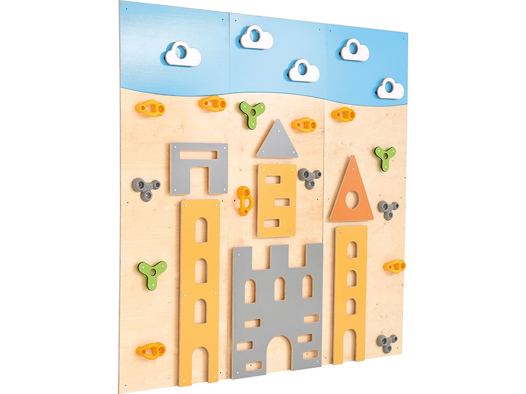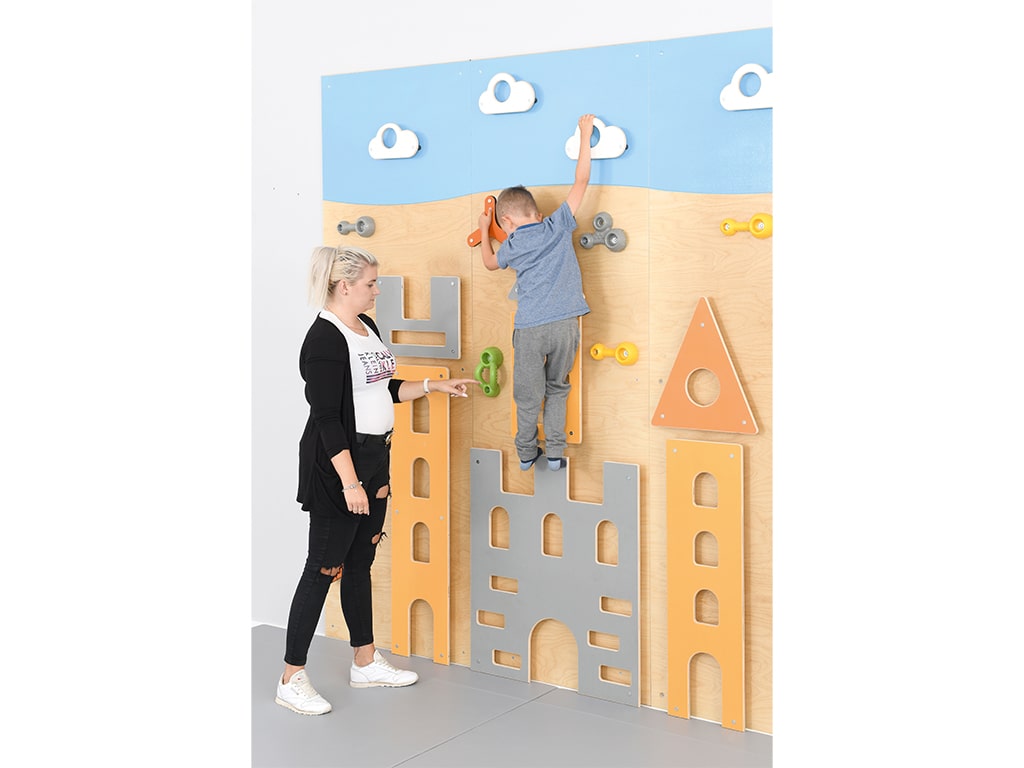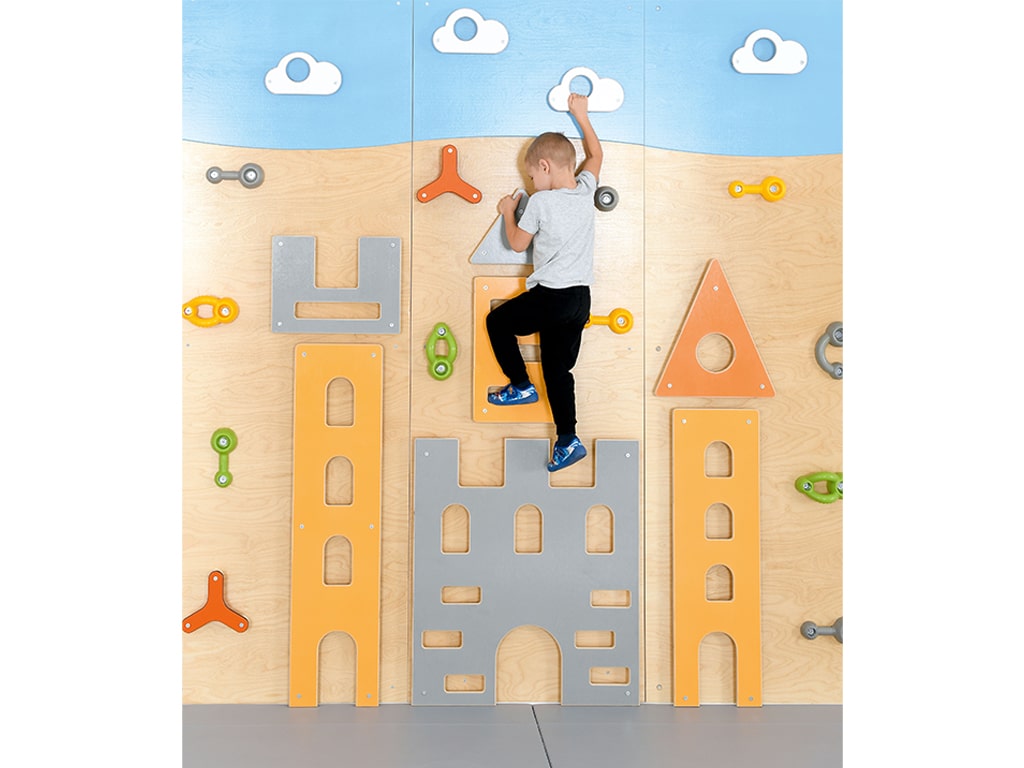 Ο τοίχος αναρρίχησης κάστρο μετατρέπει κάθε παιδικό χώρο σε πεδίο περιπέτειας και δημιουργικού παιχνιδιού. Με τον εντυπωσιακό σχεδιασμό του και τις πολύχρωμες πλαστικές λαβές σε διάφορα σχήματα, προσκαλεί τα παιδιά να ανακαλύψουν τη χαρά της αναρρίχησης, ενισχύοντας ταυτόχρονα τη δύναμη, την ισορροπία και τον συντονισμό κινήσεων.