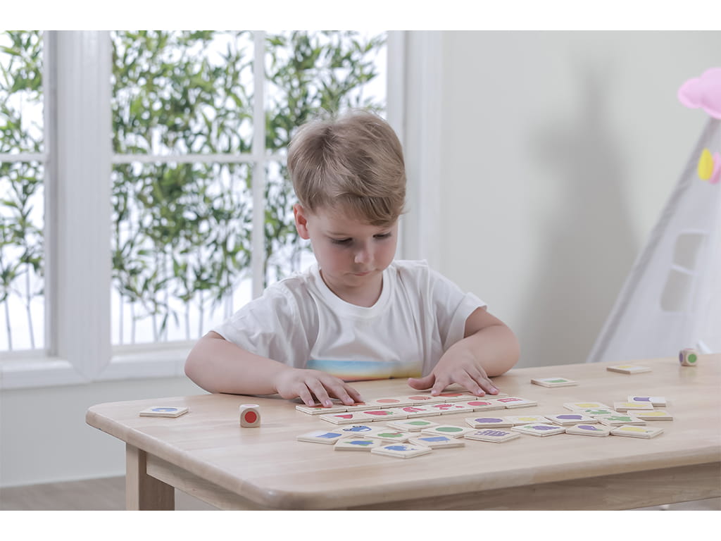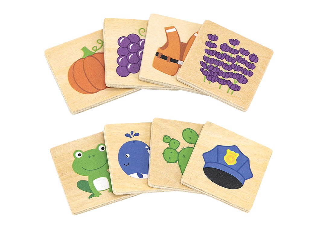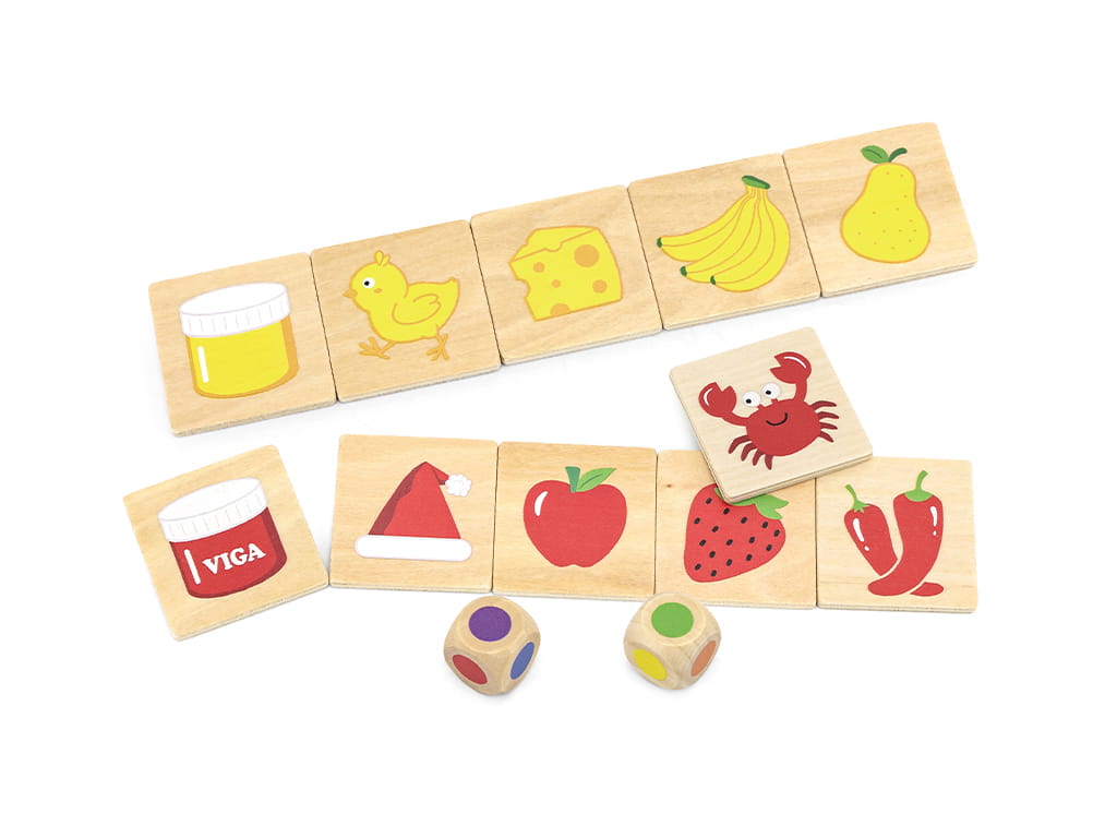 Το σετ περιλαμβάνει 36 ξύλινα κομμάτια με διαφορετικές εικόνες ανά χρώμα, καθώς και ένα ζάρι που προσθέτει επιπλέον παιχνίδι και δραστηριότητες. Τα παιδιά μπορούν να ομαδοποιούν τα κομμάτια με βάση τα χρώματα, ενισχύοντας τη λογική σκέψη και την κατανόηση. Η ποιοτική ξύλινη κατασκευή και τα ζωηρά χρώματα κρατούν το ενδιαφέρον τους και κάνουν τη μάθηση πιο ελκυστική.