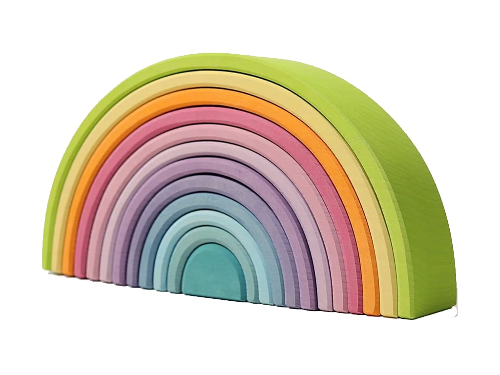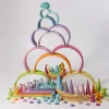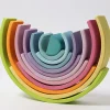 Ξύλινα τούνελ σε 12 παστέλ αποχρώσεις. Τα παιδιά μπορούν να τα στοιβάξουν ή να τα ταξινομήσουν. Από ξύλο φλαμουριάς, μη τοξικό χρώμα με βάση το νερό. Τεμάχια 12. Διαστάσεις: 36,5 Χ 18 εκ. το μεγαλύτερο. Ηλικία: 3 ετών και άνω.