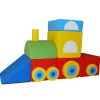 Τρενάκι τσαφ τσουφ. Γέμιση από αφρώδες υλικό επενδυμένο με δερματίνη. Το τραίνο αποτελείται από 16 κομμάτια μεταξύ των οποίων και 8 ρόδες, οι οποίες τοποθετούνται με αυτοκόλλητο βέλκρο. Εξωτερικές διαστάσεις: 200 x 60 x 110 εκατοστά ύψος.