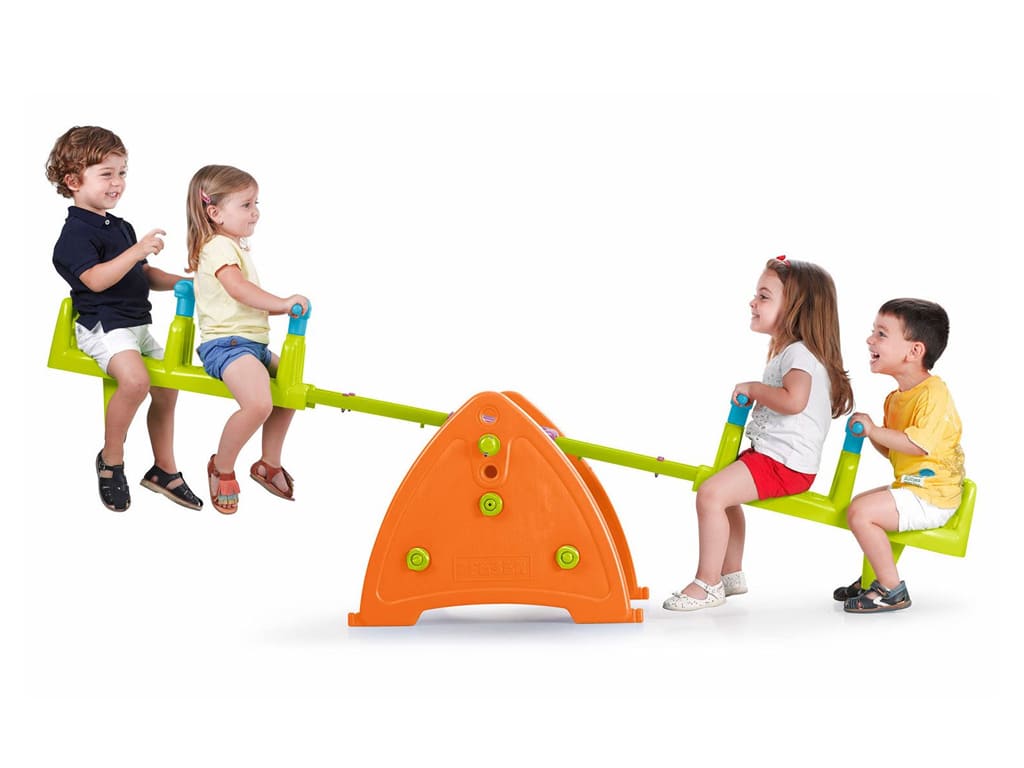 Η τραμπάλα 4 θέσεων προσφέρει χαρά και ατελείωτο παιχνίδι για έως και τέσσερα παιδιά ταυτόχρονα. Με 2 καθίσματα σε κάθε πλευρά, τα παιδιά απολαμβάνουν το κλασικό παιχνίδι της τραμπάλας σε ζευγάρια, ενισχύοντας την κοινωνικότητα και τη συνεργασία. Το ύψος είναι ρυθμιζόμενο σε 3 διαφορετικές θέσεις, προσαρμόζοντας τη λειτουργία της τραμπάλας ανάλογα με το ύψος ή την ηλικία των παιδιών.