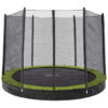 Για μέγιστη ασφάλεια και καλύτερη αναπήδηση, το τραμπολίνο διαθέτει προστατευτικό κάλυμμα ασφαλείας με UV προστασία, αεριζόμενο υλικό και αντοχή στις καιρικές συνθήκες. Το προστατευτικό δίχτυ περίφραξης προσφέρει επιπλέον σιγουριά, καθώς τα παιδιά μπορούν να παίζουν με μεγαλύτερη ασφάλεια σε έναν οριοθετημένο χώρο.