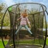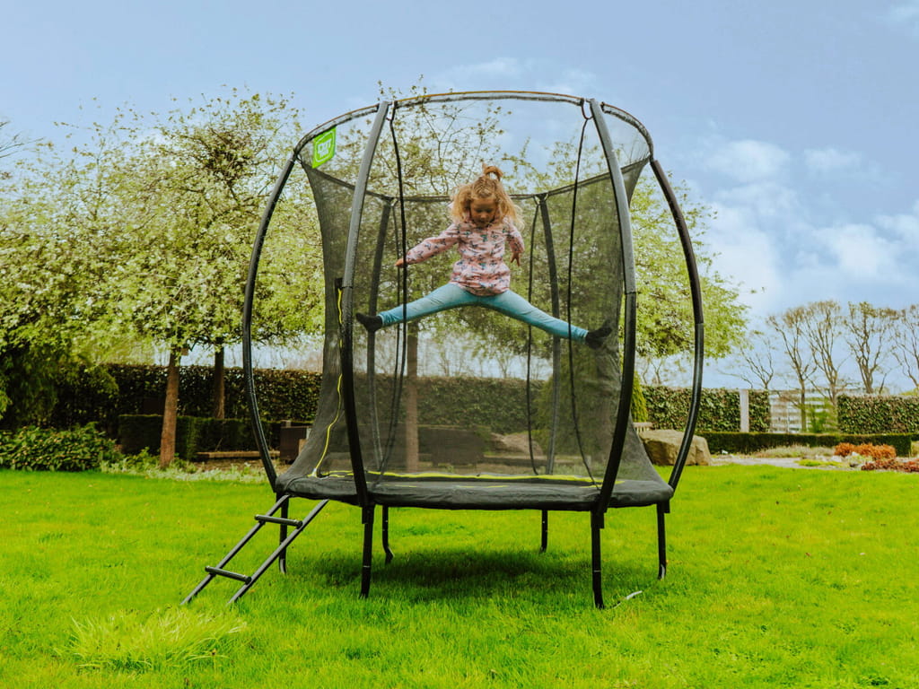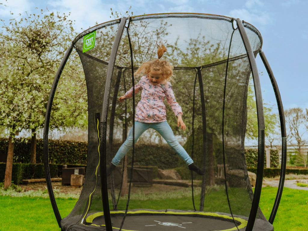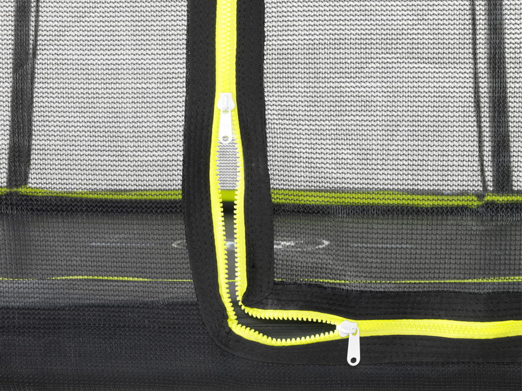Το τραμπολίνο Ø183 εκ., είναι η ιδανική επιλογή για ασφαλές και διασκεδαστικό παιχνίδι. Διαθέτει μαύρη επένδυση υψηλής ποιότητας και δίχτυ ασφαλείας, που τεντώνει σταθερά στις καμπύλες βάσεις, αποτρέποντας τα παιδιά από το να μπλεχτούν στο δίχτυ. Το φερμουάρ σε έντονο πράσινο χρώμα επιτρέπει εύκολη οπτική επιβεβαίωση ότι το δίχτυ έχει κλείσει σωστά.