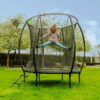Η επένδυση καλύπτει πλήρως τα 36 γαλβανισμένα ελατήρια διπλού κώνου μήκους 14,1 εκ. και διαθέτει σύστημα προστασίας ποδιών ώστε να μην μπλέκονται στα ελατήρια. Η επιφάνεια άλματος από PP (polypropylene) έχει διάμετρο 134 εκ., προσφέροντας σταθερό και δυναμικό άλμα. Ο σκελετός από γαλβανισμένο και βαμμένο με πούδρα μέταλλο εξασφαλίζει αντοχή στη σκουριά και στις καιρικές συνθήκες.