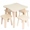Τραπεζάκι και 4 σκαμπό με απαλό κυμματισμό στο τελείωμα. Κομψά και λειτουργικά έπιπλα, κατασκευασμένα από φουρνιστή οξιά και πλακάζ. Η οξιά είναι ένα σκληρό ξύλο με ανθεκτικότητα και φυσική αντοχή, καθιστώντας το ιδανικό για έπιπλα. Διαστάσεις: Τραπέζι: 55 X 55 X 51 εκ. Σκαμπό: 27 Χ 27 Χ 28 εκ.