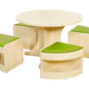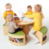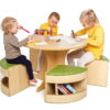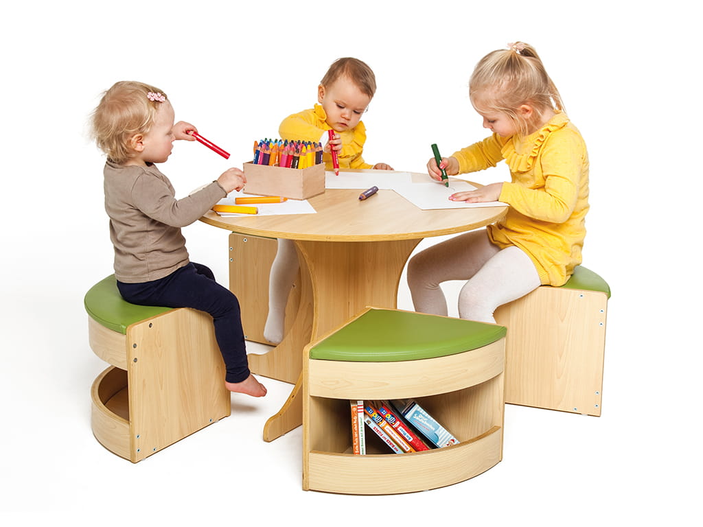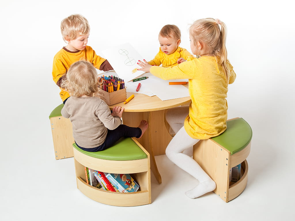 Το τραπεζάκι ροτόντα με 4 σκαμπό δημιουργεί μια ζεστή και φιλόξενη γωνιά για τα παιδιά, ιδανική για κοινές δραστηριότητες όπως φαγητό, ζωγραφική ή παιχνίδι. Κάθε σκαμπό διαθέτει χώρο αποθήκευσης για μικρά αντικείμενα όπως βιβλία, παιχνίδια και άλλα, ενώ μετά τη χρήση μπορούν να φυλαχθούν κάτω από το τραπέζι, εξοικονομώντας χώρο.