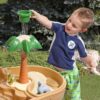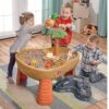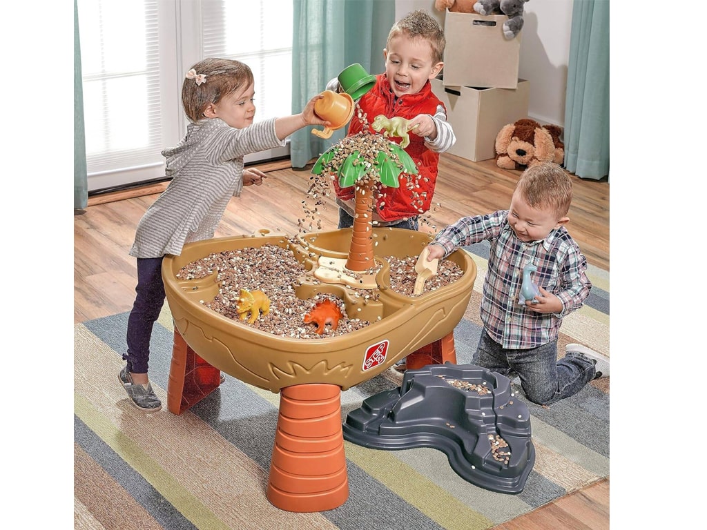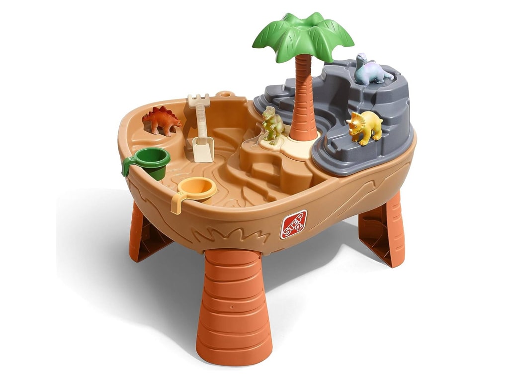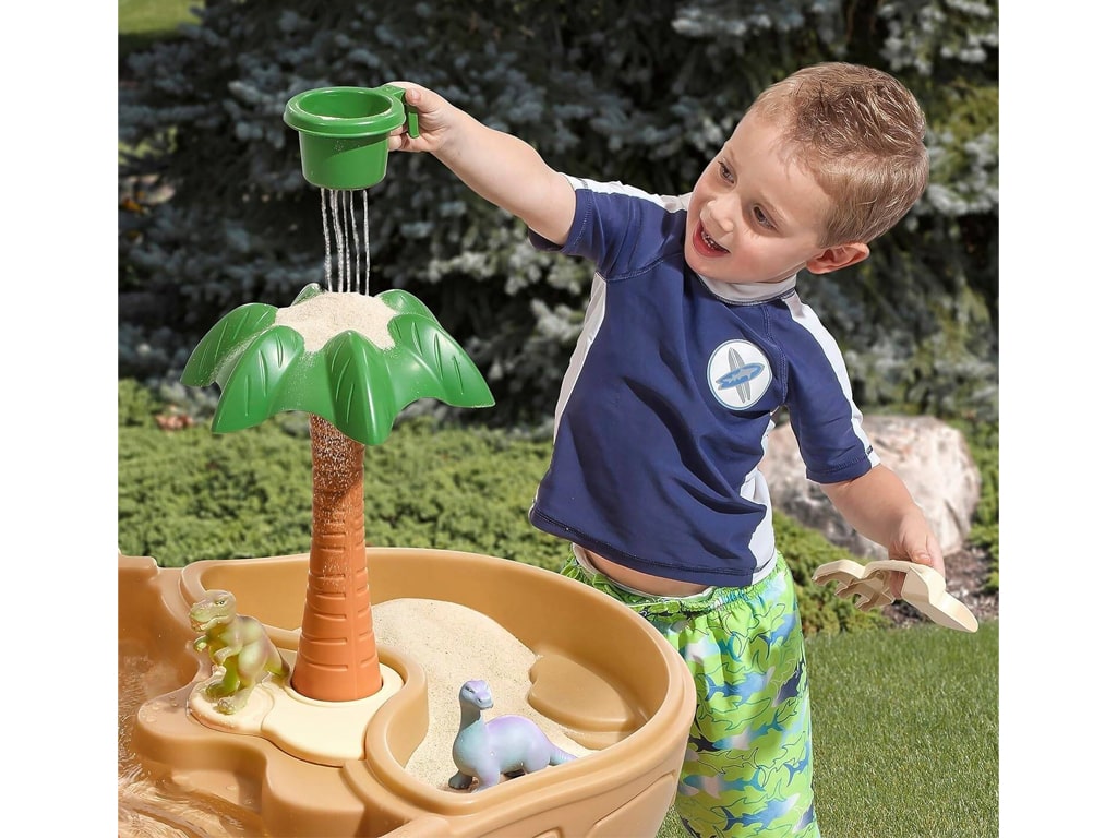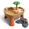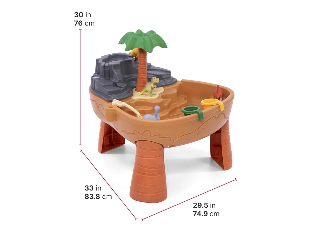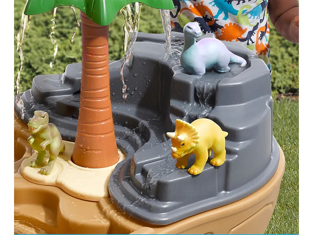 Τραπέζι άμμου και νερού δεινόσαυροι Ηλικία: 2+. Διαστάσεις: 76,2×74,9×83,8 εκ. Το τραπέζι χωρίζεται σε 2 μέρη, το ένα είναι για το νερό και το άλλο για την άμμο. Περιλαμβάνονται 4 δεινόσαυροι, 2 κουβαδάκια, 1 φτυαράκι, 1 δεντράκι και 1 ηφαίστειο το οποίο λειτουργεί και ως καπάκι για την πλευρά της αμμοδόχου. Η τρύπα στην βάση του τραπεζιού μπορεί να υποστηρίξει τοποθέτηση ομπρέλας. Λόγω βάρους δεν αποστέλλεται με αντικαταβολή και τα έξοδα αποστολής βαρύνουν τον παραλήπτη.