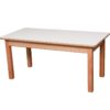 Ο σκελετός είναι κατασκευασμένος από ξύλο φουρνιστής οξιάς άριστης ποιότητας, λουστραρισμένος στο φυσικό χρώμα του ξύλου. Τα πόδια έχουν τετραγωνική διατομή 5 χ 5 εκατοστά το καπάκι είναι κατασκευασμένο από συνθετικό ξύλο M.D.F με επένδυση φορμάικας σε χρώματα της επιλογής σας. Στα πέλματα φέρει φυτευτά ελαστικά τακάκια για την αθόρυβη μετακίνησή του και για την προστασία του δαπέδου. Τα βερνίκια και τα χρώματα που χρησιμοποιούνται είναι νερού, μη τοξικά και φιλικά προς το περιβάλλον. Διαστάσεις: 120 x 60 x 56 εκατοστά ύψος. Όλα τα τραπέζια μας είναι κατασκευάσμενα σύμφωνα με τα πρότυπα: ΕΝ 71-1:2014 ΕΝ 71-2:2011+Α1:2014 ΕΝ 71-3:2013+Α1:2014 και συνοδευόνται από Έκθεση δοκιμών.