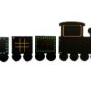 - Αποτελείται από 4 κομμάτια: μηχανή + 3 βαγόνια (τρίλιζα, γράμματα, αριθμοί)
