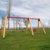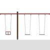 Οι οριζόντιες δοκοί της κούνιας κατασκευάζονται από ενισχυμένο σιδηροσωλήνα Φ89 χιλ. Στηρίζονται σε 6 κεκλιμένα υποστυλώματα, 1 ζεύγος σε κάθε άκρο και 1 ζεύγος στο μέσο, από επικολλητές δοκούς διαστάσεων 10 x 10 εκ. Στο κάτω μέρος των δοκών και σε κατάλληλες θέσεις συγκολλώνται 6 κουζινέτα, ειδικά σχεδιασμένα για την ανάρτηση των καθισμάτων. Τα καθίσματα παίδων έχουν διαστάσεις 44 x 18 x 4 εκ. και είναι κατασκευασμένα από καουτσούκ με εσωτερική ενίσχυση από αλουμίνιο. Το κάθισμα νηπίων έχει διαστάσεις 44 x 33 x 29 εκ. και έχει την μορφή “λίκνου” όπου το παιδί φωλιάζει στη θέση και προστατεύεται περιμετρικά. Αναρτώνται από τα κουζινέτα με τη χρήση ζεύγους γαλβανισμένων αλυσίδων.