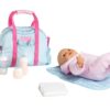 Η τσάντα αλλαγής και περιποίησης για κούκλες είναι ο ιδανικός εξοπλισμός για να υποδυθούν τα μικρά παιδιά τους γονείς της κούκλας και να φροντίσουν τις αγαπημένες τους κούκλες. Η όμορφη αυτή τσάντα περιλαμβάνει όλα τα απαραίτητα αξεσουάρ: μπιμπερό για το τάισμα, χτένα, καθρέφτη, βαζάκι με κρέμα και πούδρα, νέα πάνα και στρωματάκι αλλαγής. Όλα τα αξεσουάρ είναι έτοιμα προς χρήση, επιτρέποντας στα παιδιά να φροντίσουν την κούκλα τους με άνεση και ευκολία, ακόμα και όταν είναι μακριά από το σπίτι.