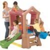 Κατασκευασμένο από ανθεκτικό πλαστικό υλικό υψηλής ποιότητας και απεριόριστης αντοχής από την STEP2. Διαθέτει τοίχο αναρρίχησης, σκάλα με χειρολαβές, κρυφό τούνελ και μεγάλη πλατφόρμα δύο επιπέδων, από την οποία ξεκινούν οι δύο τσουλήθρες, μία για μικρότερες ηλικίες και μια για μεγαλύτερες ηλικίες, καθώς και μία τιμονιέρα. Ιδιαίτερα ανθεκτική κατασκευή στην σκληρή χρήση και στις άσχημες καιρικές συνθήκες. Μέγιστο βάρος: 85Kg. Διαστάσεις: 135 x 214 x 155 εκατοστά.