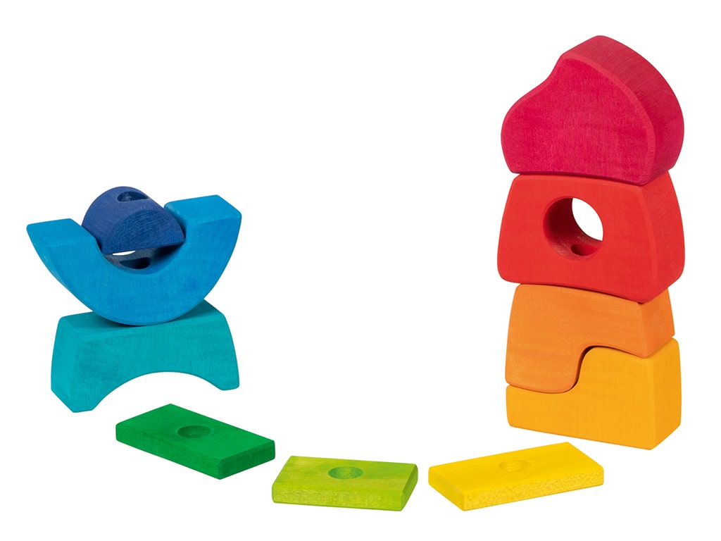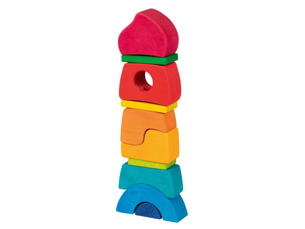 Το ξύλινο κάστρο στοίβαξης της Goki είναι ένα παιχνίδι ανοιχτού τύπου, που προσφέρει αμέτρητες δυνατότητες στοίβαξης, ταξινόμησης και δημιουργικού παιχνιδιού. Αποτελείται από διαφορετικά διαμορφωμένα δομικά στοιχεία που μπορούν να στοιβάζονται στην ξύλινη ράβδο, αλλά είναι εξίσου κατάλληλα για ελεύθερο παιχνίδι, δίνοντας στα παιδιά την ελευθερία να φανταστούν και να χτίσουν το δικό τους κάστρο με μοναδικό τρόπο. Κατασκευασμένο από ανθεκτικό ξύλο και βαμμένο με ασφαλή χρώματα νερού, το κάστρο στοίβαξης είναι φιλικό προς τα παιδιά και το περιβάλλον. Ενισχύει τις λεπτές κινητικές δεξιότητες, τη λογική σκέψη και τη δημιουργικότητα, ενώ αφήνει τα παιδιά να αλληλεπιδρούν με αυτό με τον δικό τους τρόπο, ενθαρρύνοντας τη φαντασία και το ελεύθερο παιχνίδι.