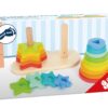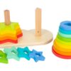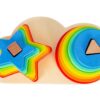 Διπλή βάση ταξινόμησης με αστέρια και κύκλους. Κατασκευασμένη από μασίφ ξύλο υψηλής ποιότητας με έντωνα χρώματα ουράνιου τόξου. Τα παιδιά θα μάθουν να ταξινομούν τα χρώματα και τα σχήματα ανά μέγεθος και θα βελτιώσουν τη λεπτή κινητικότητα και τον συντονισμό χεριού-ματιού. Διαστάσεις: 19 x 10 x 11 εκ. Ηλικία: 12 μηνών και άνω.