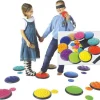Βήματα αφής. Σετ από 10 διαφορετικές επιφάνειες αφής – 10 μεγάλες και 10 μικρές. Αναπτύσσει την αίσθηση της αφής συγχρόνως στα πόδια και στα χέρια. Εξασκεί την ικανότητας της έκφρασης και της περιγραφής.