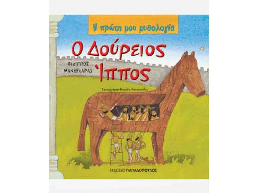 Βιβλίο Δούρειος Ίππος. H πρώτη μου Μυθολογία! Σκληρό εξώφυλλο, Διαστάσεις: 20 x 20 εκατοστά, Σελίδες: 36, Η πρώτη μου μυθολογία που διηγείται, με πολλά σκίτσα και στιχάκια, ιστορίες από την ελληνική μυθολογία. Η σειρά απευθύνεται σε παιδιά από περίπου τεσσάρων χρονών και στο τέλος κάθε βιβλίου περιλαμβάνονται παιχνιδάκια και σχετικά με το θέμα του.