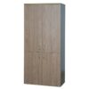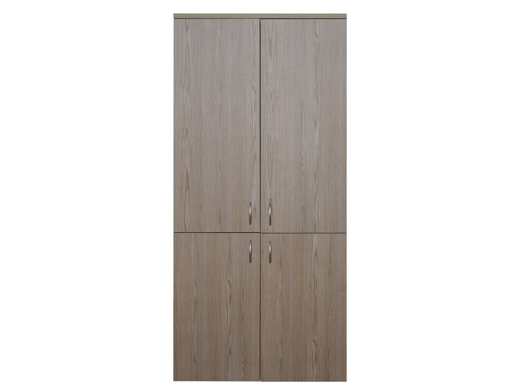 Η βιβλιοθήκη διαθέτει τέσσερις πόρτες που καλύπτουν τον εσωτερικό αποθηκευτικό χώρο με πέντε ενιαία ράφια, ιδανικά για βιβλία, ντοσιέ ή εποπτικό υλικό. Η επένδυση μελαμίνης προστατεύει τις επιφάνειες από καθημερινή φθορά και είναι εύκολη στον καθαρισμό, ενώ τα περιθώρια PVC προσθέτουν ανθεκτικότητα και ασφάλεια.