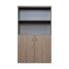 Η βιβλιοθήκη διαθέτει δύο πόρτες με επένδυση μελαμίνης, που καλύπτουν τα δύο από τα τέσσερα ράφια. Η επένδυση μελαμίνης προστατεύει τις επιφάνειες από καθημερινή φθορά και είναι εύκολη στον καθαρισμό, ενώ τα περιθώρια PVC προσθέτουν ανθεκτικότητα και ασφάλεια.