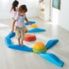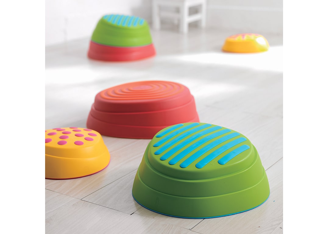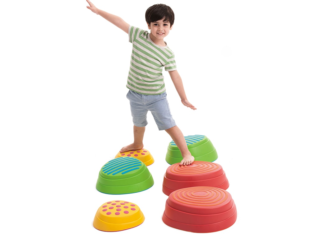 Η αντιολισθητική και ανάγλυφη επιφάνεια διεγείρει την αφή και παρέχει ασφάλεια, ενώ το ελαστικό κέντρο κάθε βράχου απορροφά τους κραδασμούς και προσφέρει επιπλέον άνεση στο πήδημα. Μέσα από το παιχνίδι ενισχύονται οι κινητικές δεξιότητες, η ισορροπία και ο συντονισμός, ενώ τα παιδιά καλλιεργούν αυτοπεποίθηση, δεξιότητες αντίδρασης και ικανότητα σχεδιασμού κινήσεων.