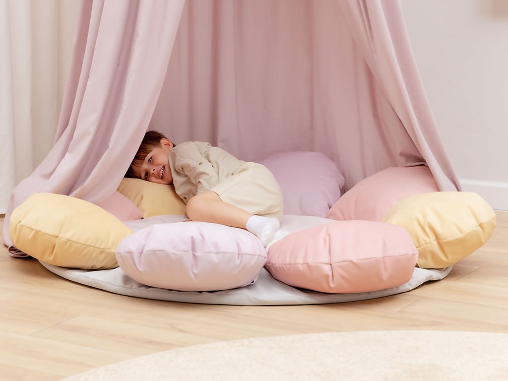 Με ύψος 17 εκ. και διάμετρο 150 εκ., δημιουργεί έναν προστατευτικό, cozy χώρο για δραστηριότητες, παιχνίδι στο πάτωμα ή στιγμές χαλάρωσης. Οι παστέλ αποχρώσεις της την κάνουν ιδιαίτερα φιλική και ευχάριστη στο μάτι, ταιριάζοντας τέλεια σε παιδικούς χώρους.