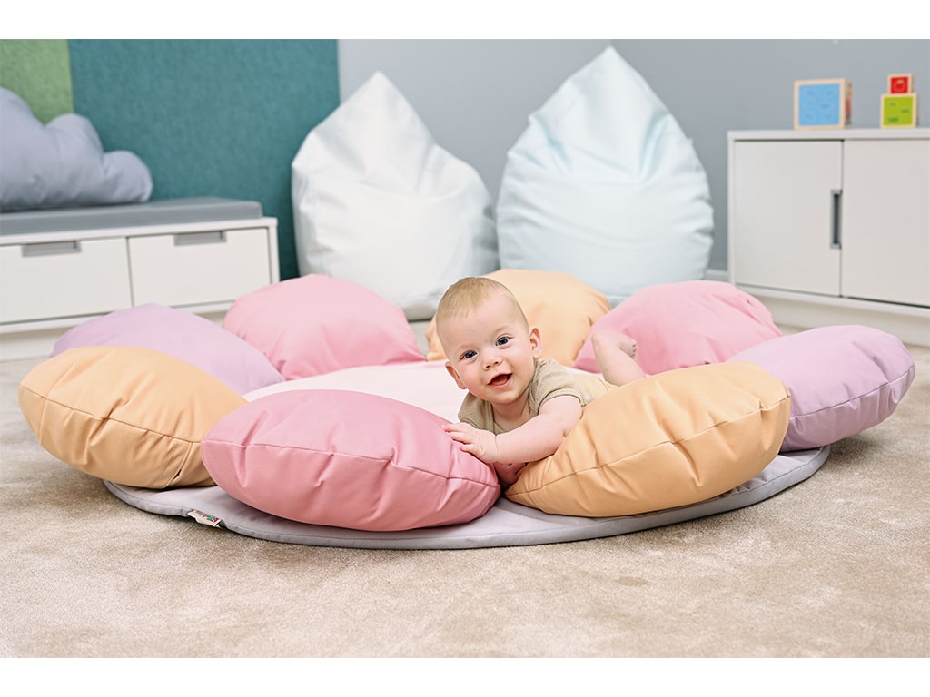 Η βρεφική φωλίτσα λουλούδι, είναι μια υπέροχα μαλακή και άνετη μαξιλάρα, ιδανική για βρεφονηπιακούς σταθμούς, παιδότοπους αλλά και για χρήση στο σπίτι. Είναι κατασκευασμένη από αφράτο σφουγγάρι και επενδυμένη με βαμβακερό ύφασμα, προσφέροντας ασφάλεια, άνεση και ζεστασιά στα μικρά παιδιά καθώς παίζουν ή ξεκουράζονται.