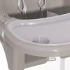 Βρεφικό κάθισμα με ρυθμιζόμενο ύψος καθίσματος, δίσκου και υποπόδιου. Με ζώνες ασφαλείας. Διπλός δίσκος αφαιρούμενος που μπορεί να αποθηκευτεί στα πίσω πόδια. Εύκολο στη μεταφορά και την αποθήκευση. Καθαρίζετε εύκολα η ταπετσαρία με ζεστό νερό και μαλακό σαπούνι και τα πλαστικά μέρη πρέπει να καθαρίζονται τακτικά με ένα υγρό πανί.