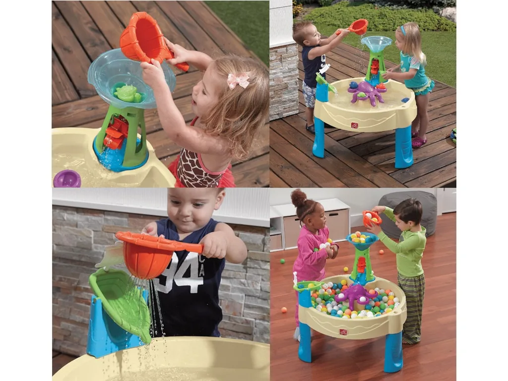 Πύργος με νερόμυλο που συνδέεται με την πισίνα. Το χταπόδι στη μέση, δημιουργεί δίνη νερού με την περιστροφή του. Με 10 αξεσουάρ όπως ζωάκια της θάλασσας, βαρκάκι, σουρωτήρι και άλλα. Πολύ ανθεκτική κατασκευή. Ιδανικό για ομαδικό παιχνίδι. Με τάπα που δεν επιτρέπει διαρροές. Μπορεί να γεμίσει με διαφορετικά αντικείμενα για παιχνίδι sensory εσωτερικού χώρου.