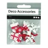 Ξύλινες Χριστουγεννιάτικες φιγούρες με αυτοκόλλητο στο πίσω μέρος. 10 τεμάχια. Μήκος: 4,5 – 6 εκ. μήκος.