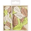 φυλλαράκια. Διαστάσεις: 3 & 4 εκ. 54 τεμάχια μέσα σε ξύλινο κουτί. Χρώμα: μπεζ, καφέ & λαχανί.