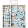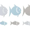 ψαράκια. Διαστάσεις: 3 & 4 εκ. 54 τεμάχια μέσα σε ξύλινο κουτί. Χρώμα: γαλάζιο, τρικουάζ & γκρι.